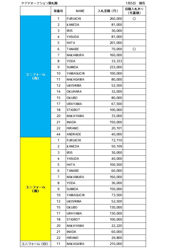 本オークションで皆様方からお寄せいただいた収益は、選手がより良い環境で活動できるよう、競技活動および関連する活動資金として有効に活用させて頂きます。