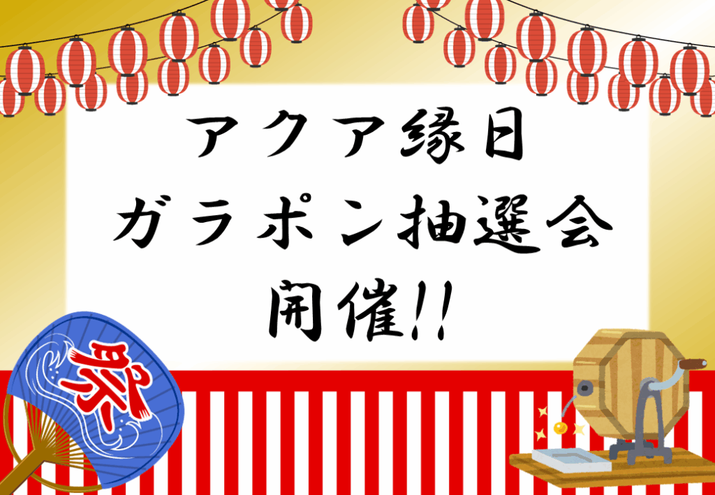 2月8日(日) AM11:45より、『アクア縁日 ガラポン抽選会』を開催いたします!!